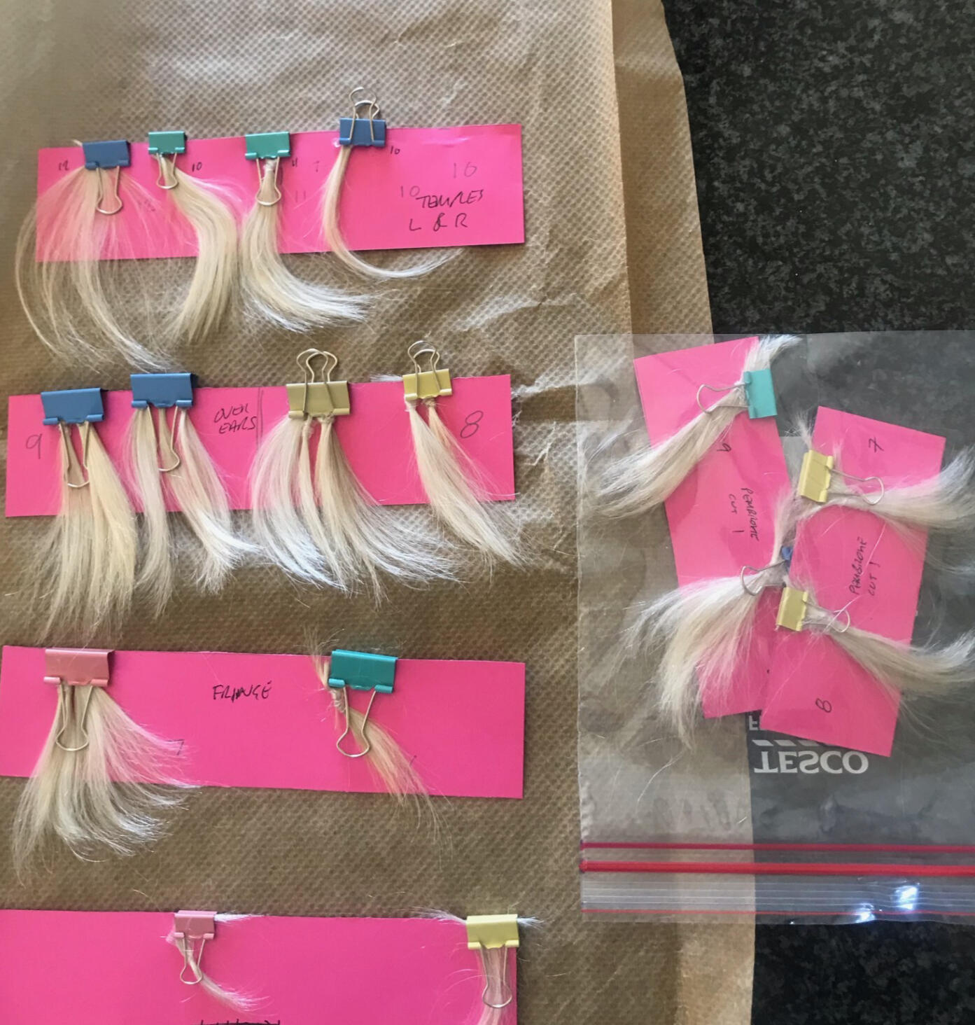 Hair is cut, labelled, and stored so it can all be used — nothing wasted, everything treasured.